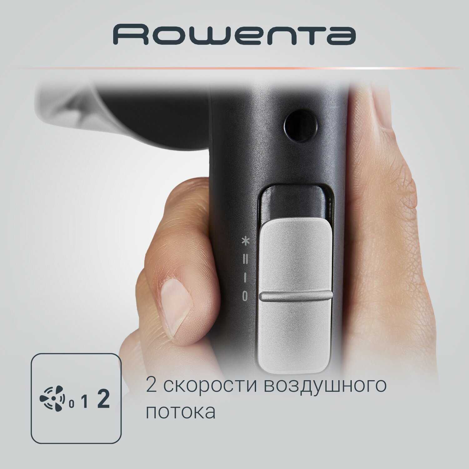 - Регулировка скорости в два уровня позволяет адаптировать поток под тип волос, предотвращая пересушивание и сохраняя естественный блеск.