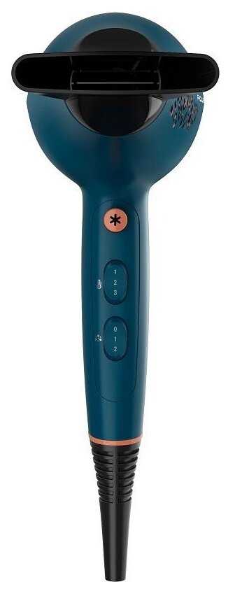 - Кнопка расположена в зоне доступа большого пальца, что удобно при удержании фена.