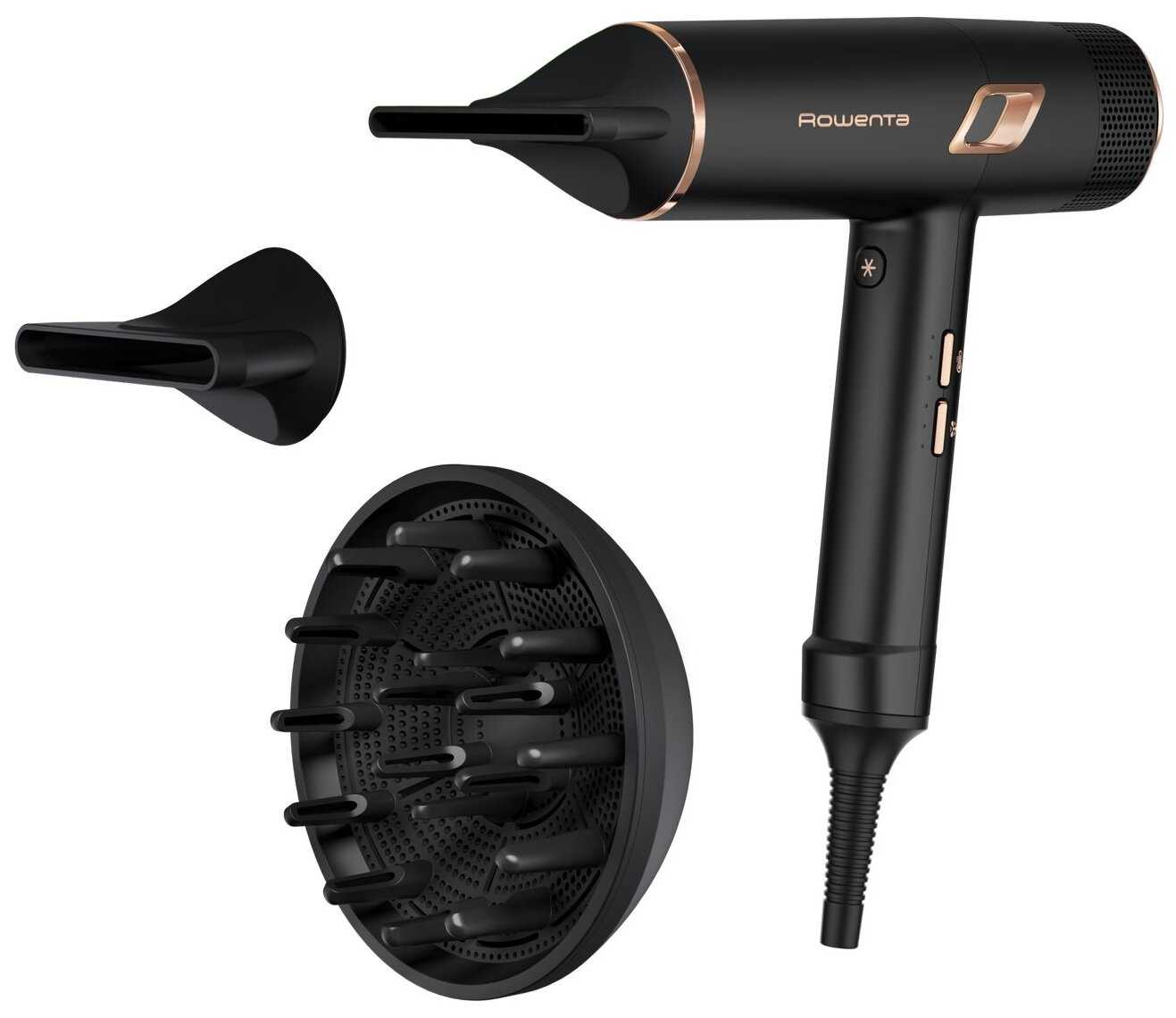 - Мощность 2000 Вт на минимальной скорости создаёт слишком сильный поток, «сдувающий» мелкие пряди.