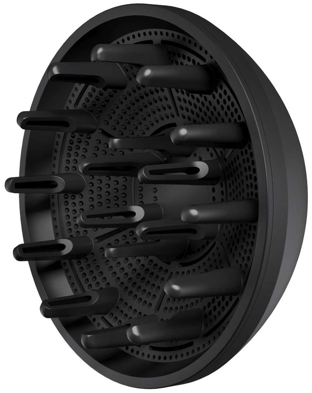 - Диффузор с силиконовыми «пальцами» равномерно распределяет воздух, сохраняя структуру кудрей без спутывания.