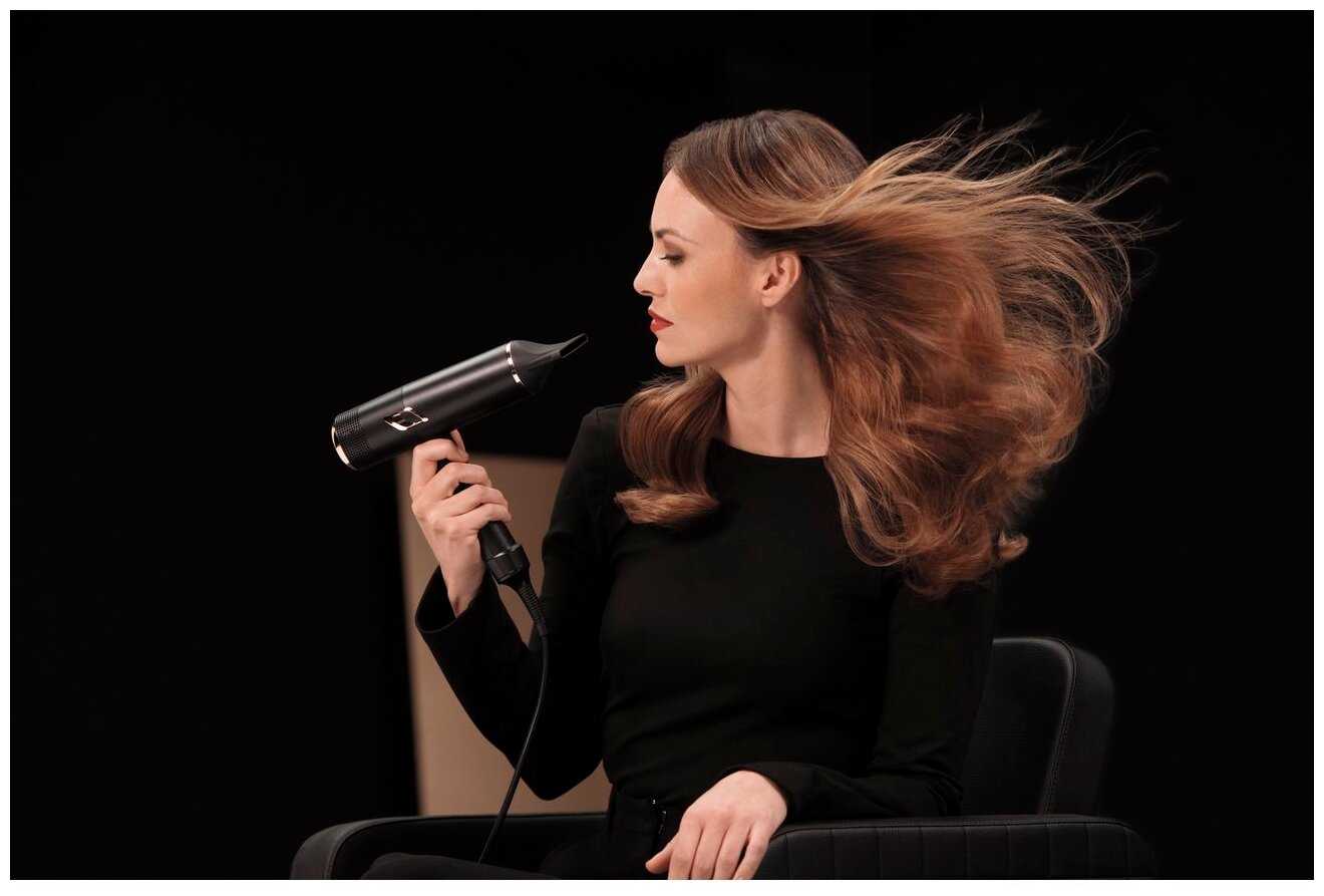 - Турбинный эффект обеспечивает «плотный» воздух, который проникает в густые пряди, не распушая их.