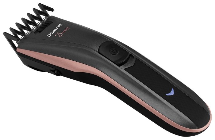 - Фиксатор насадок с щелчком предотвращает смещение во время стрижки.