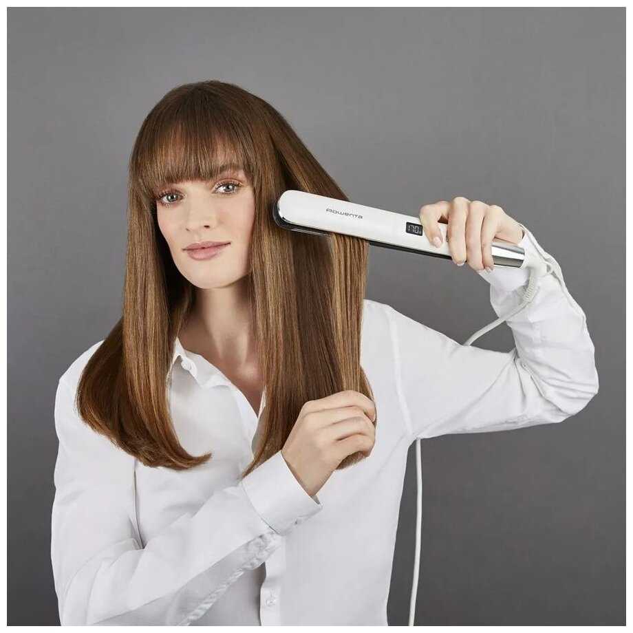 - Эффективно выпрямляет кудрявые и жесткие волосы при 190-200°C без необходимости многократных проходов.
