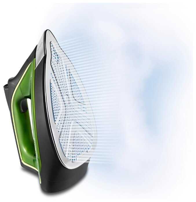 - Подошва утюга с более чем 400 отверстиями равномерно распределяет пар, устраняя даже глубокие складки за один проход.