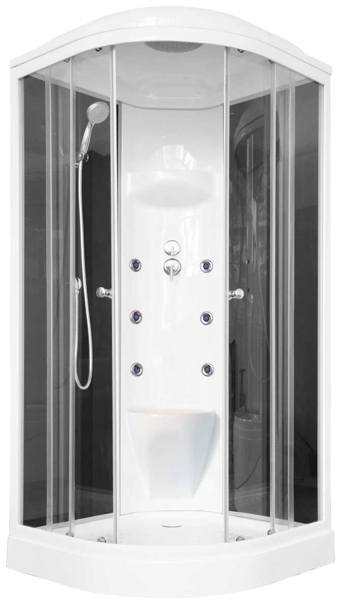 Комплектация | Душевая кабина - 1 шт. Душевой гарнитур - 1 шт. Сифон - 1 шт. Система гидромассажа - 1 шт. Инструкция - 1 шт., Гарантия | 10 лет, Страна | Россия, Стиль | современный, Материал профиля | алюминий, Оснащение | душевой гарнитур/сифон