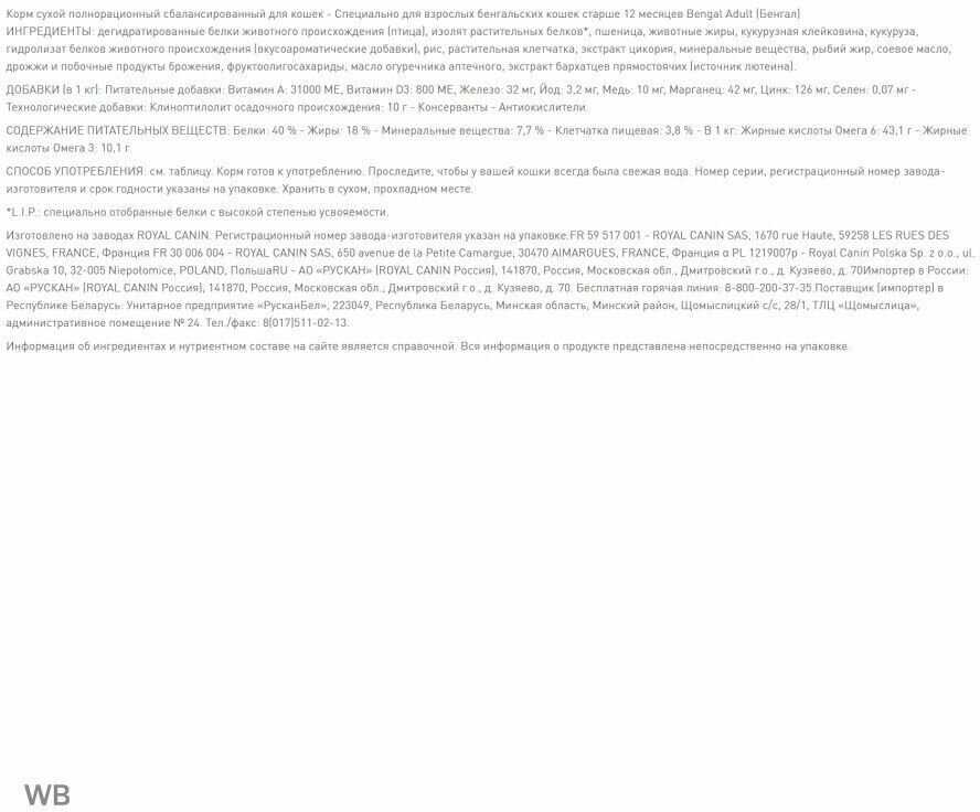 Дополнительная информация : | технологические добавки: клиноптилолит осадочного происхождения 10 г, консерванты, антиокислители. |