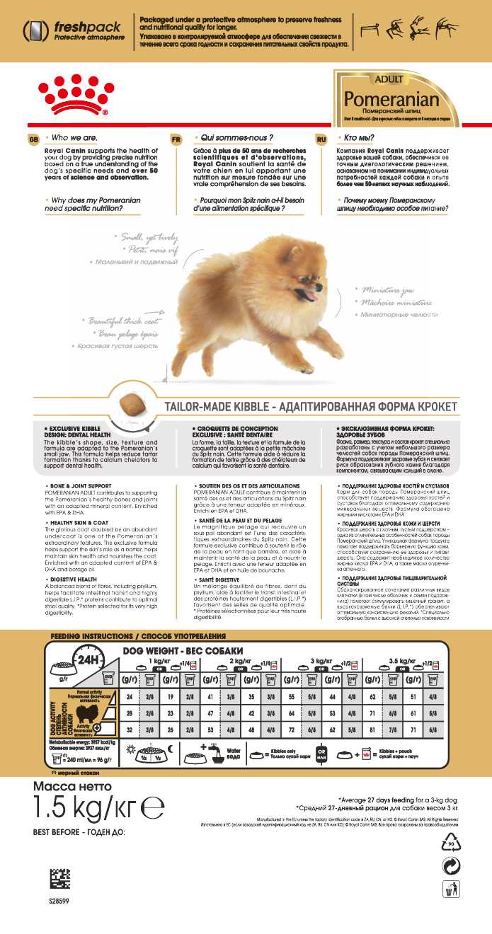 | Дополнительная информация : | Сухой корм для собак породы померанский шпиц Royal Canin Pomeranian Adult в возрасте от 8 месяцев - 1, 5 кг - 1 штука Сухой корм для собак породы померанский шпиц Royal Canin Pomeranian Adult в возрасте от 8 месяцев - 1, 5 кг - 1 штука |