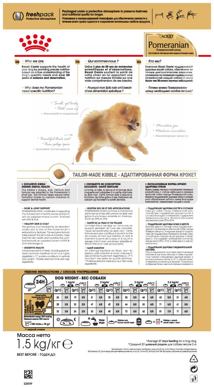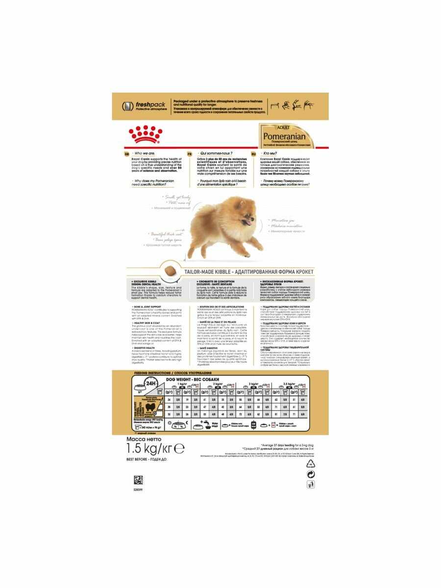 Дополнительная информация : | Сухой корм для собак породы померанский шпиц Royal Canin Pomeranian Adult в возрасте от 8 месяцев - 1, 5 кг - 1 штука Сухой корм для собак породы померанский шпиц Royal Canin Pomeranian Adult в возрасте от 8 месяцев - 1, 5 кг - 1 штука |