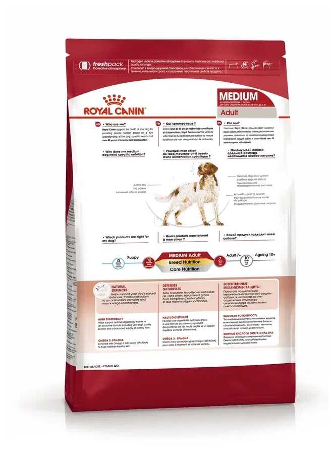 Корм успешно применяется для колли, корги, лабрадоров, кокер-спаниелей и эстонских гончих. Подходит как щенкам (линейка "медиум"), так и взрослым собакам. Владельцы крупных пород ценят гранулы в форме бумеранга, удобные для захвата. -