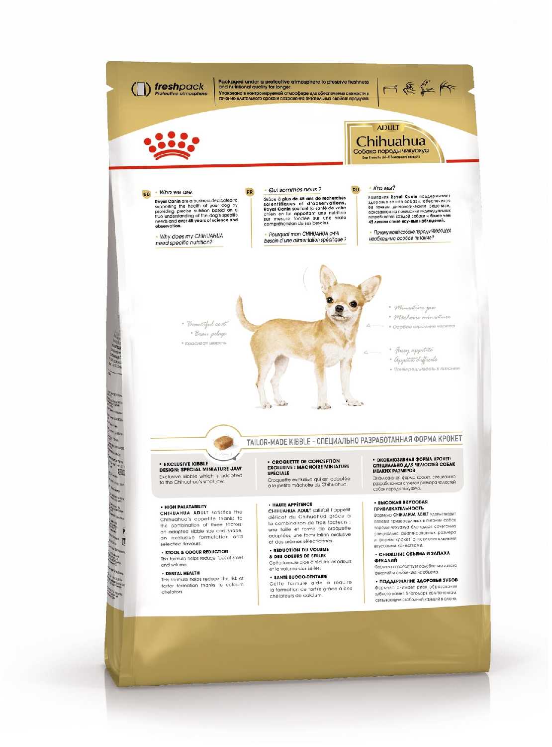 - Гранулы адаптированы под челюсти чихуахуа, позволяя есть без усилий и снижая риск травм десен.