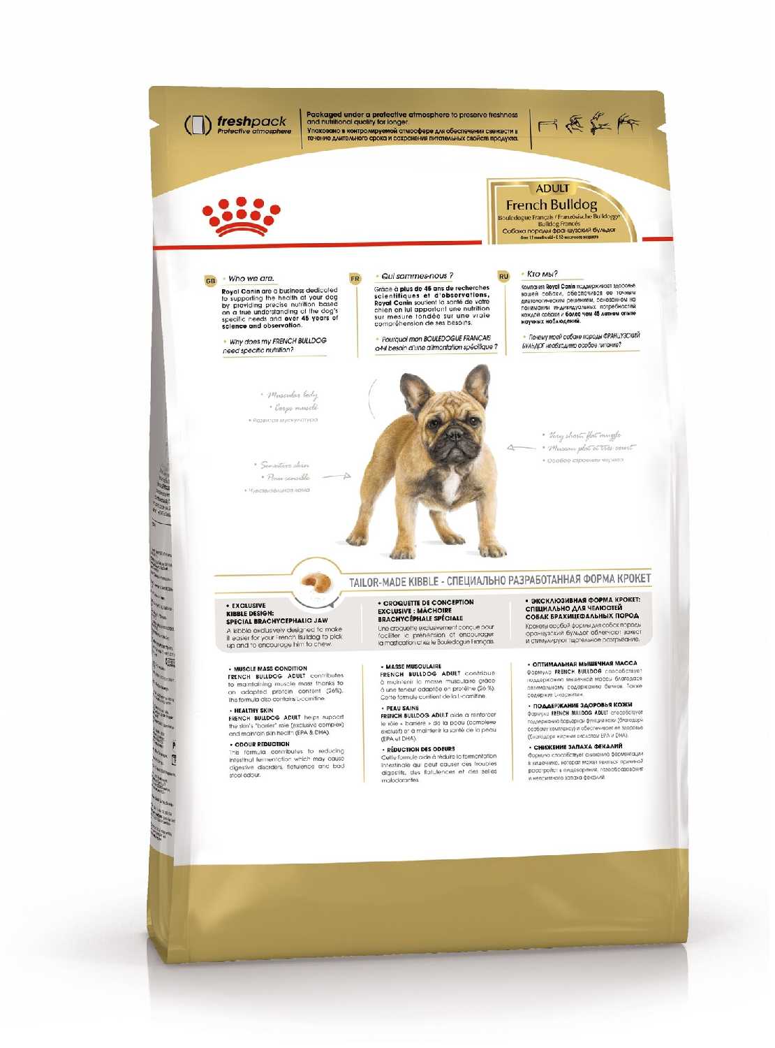 Да, формула разработана с учетом особенностей обеих пород: чувствительного пищеварения, склонности к аллергии и специфики прикуса. Владельцы и французских, и английских бульдогов отмечают улучшение здоровья питомцев, хотя гранулы могут быть чуть великоваты для мелких французов. -
