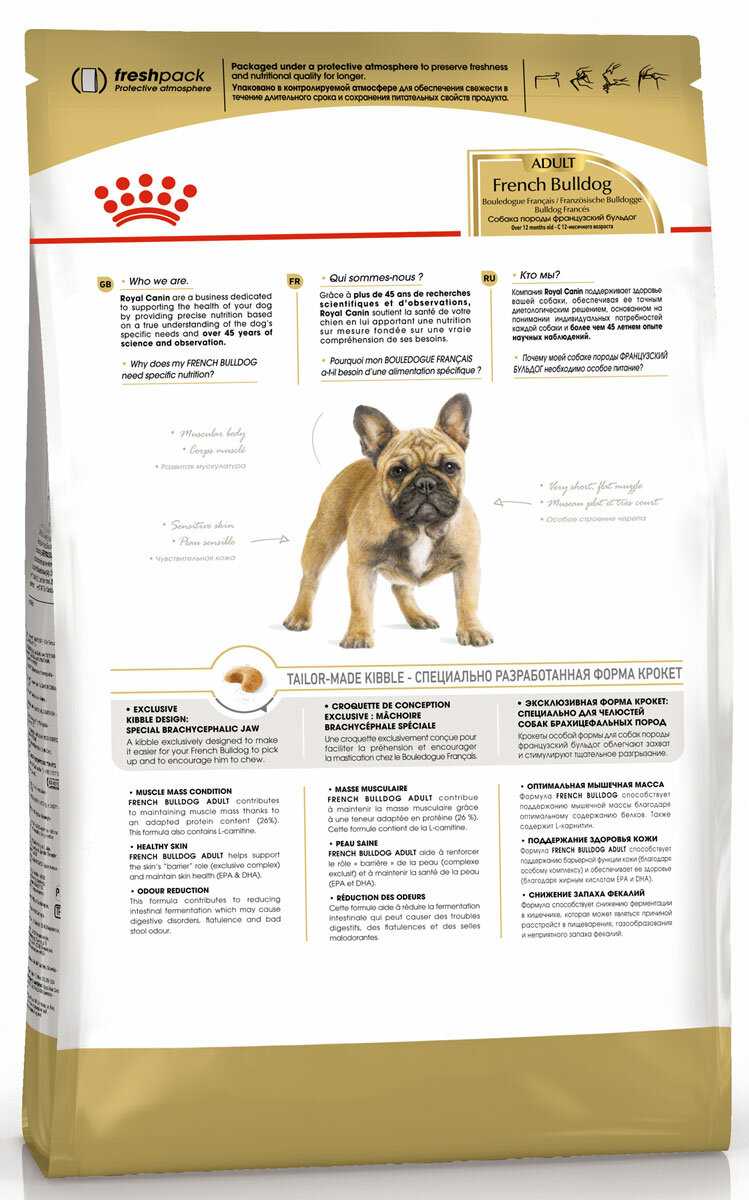 - Сбалансированный состав для чувствительного пищеварения бульдогов: