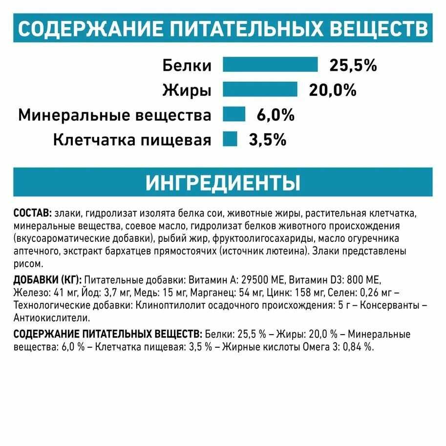 Особые потребности : | гипоаллергенный, для беременных / кормящих кошек, для живущих в помещении, для живущих на улице, для здоровья кожи и блеска шерсти, для здоровья костей и суставов, для стерилизованных/кастрированных, при чувствительном пищеварении, профилактика МКБ, профилактика избыточного веса |