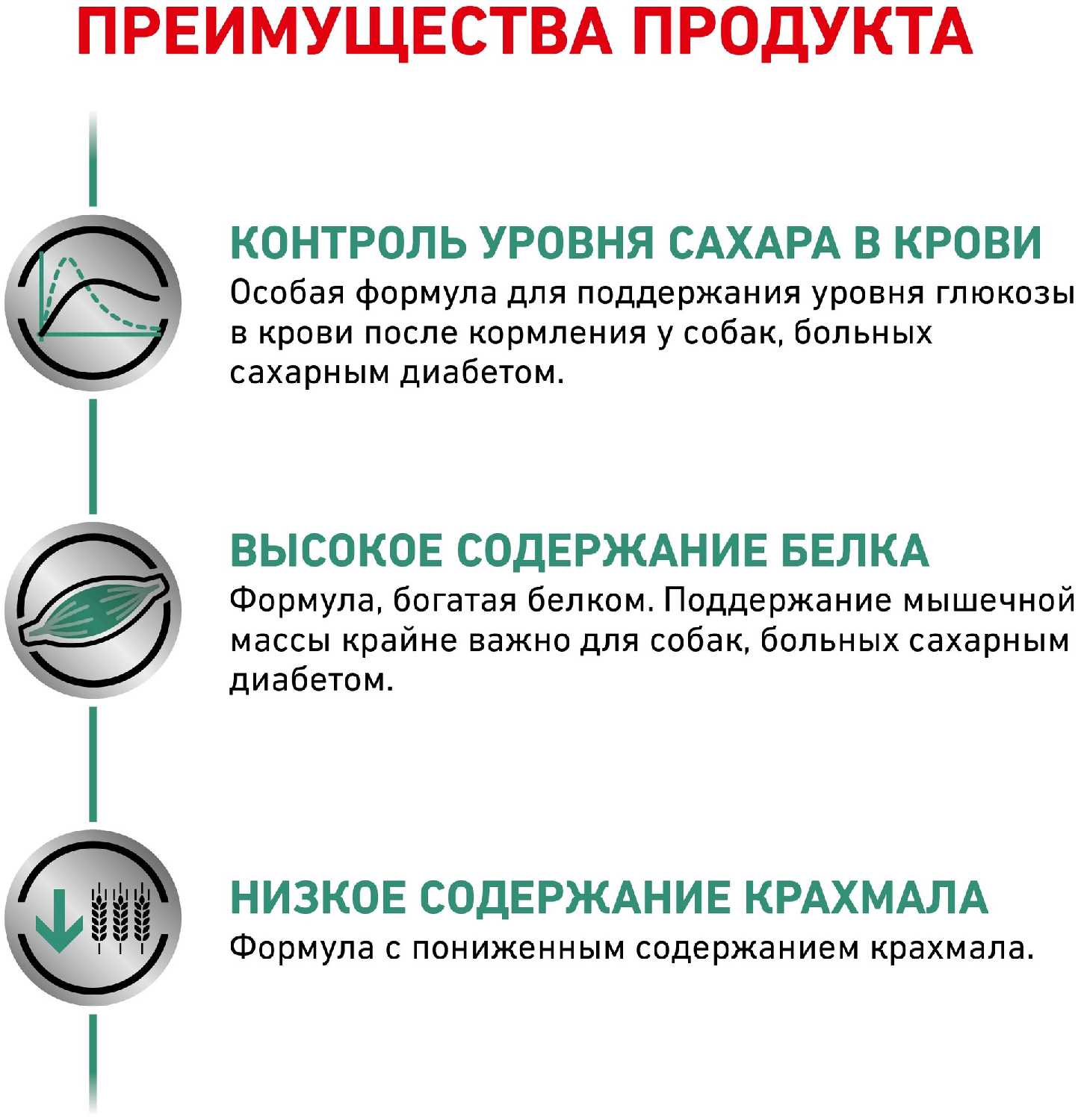когда узнали,что у собаки сахарный диабет , пришлось перевести собаку на этот корм,поначалу вообще не хотел есть его,но мы стали добавлять по чайной ложке его жидкого корма в сухой,и он теперь ест его отлично.