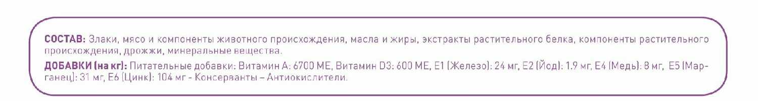 Возраст животного : | взрослые (1-6 лет), пожилые (7+) |