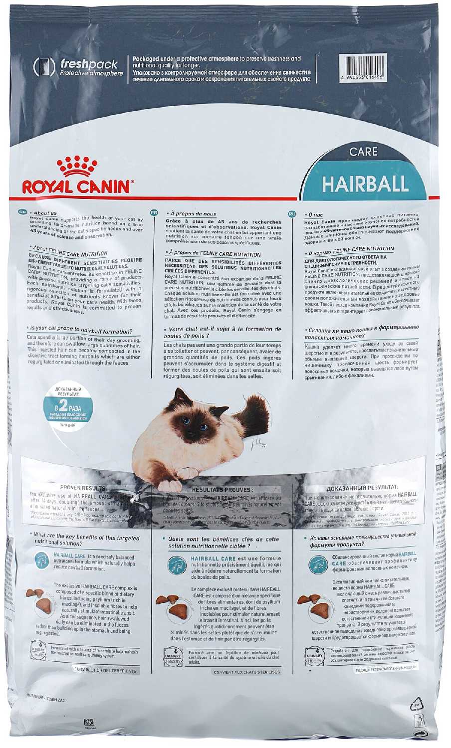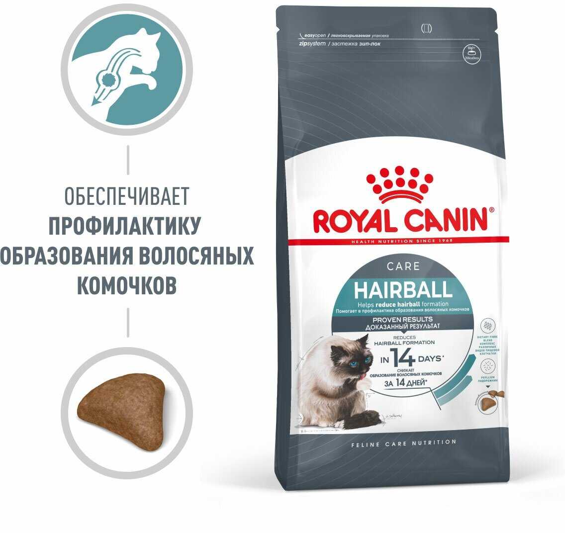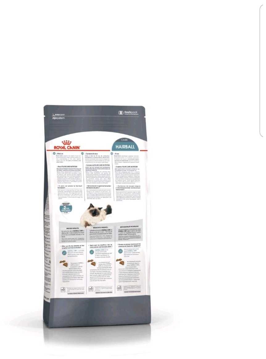 Когда я заменила корм на Royal Canin Hairball Care проблемы со срыгиванием шерсти исчезли. Кошка ест его охотнее привычного корма. Особых внешних изменений я не заметила- шерсть не стала гуще или краше, но проблем с пищеварением действительно стало меньше.