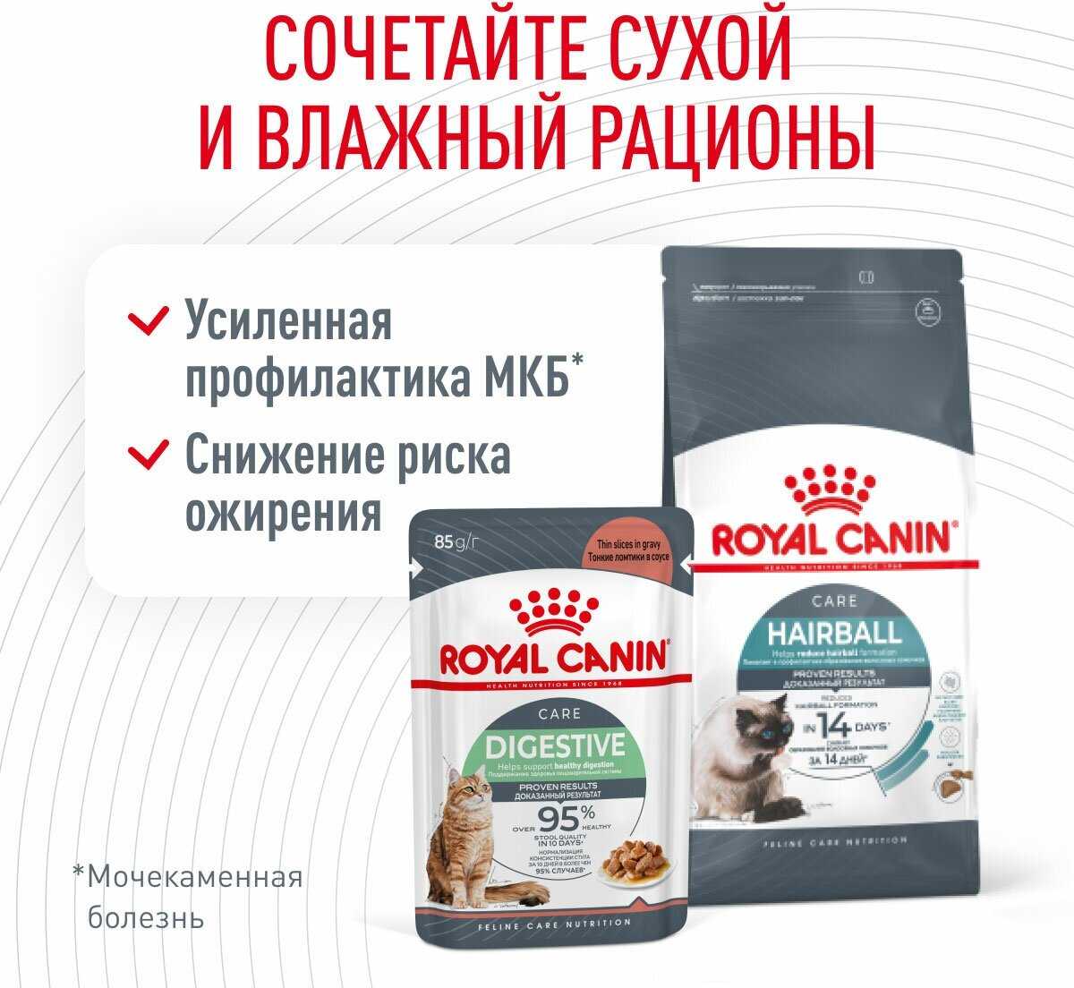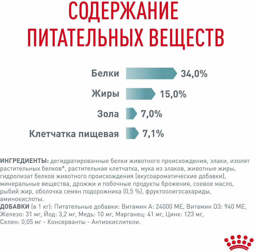 Особые потребности : | для вывода шерсти, для живущих в помещении, для здоровья кожи и блеска шерсти, для стерилизованных/кастрированных, при чувствительном пищеварении, профилактика МКБ, профилактика зубного камня, профилактика избыточного веса |