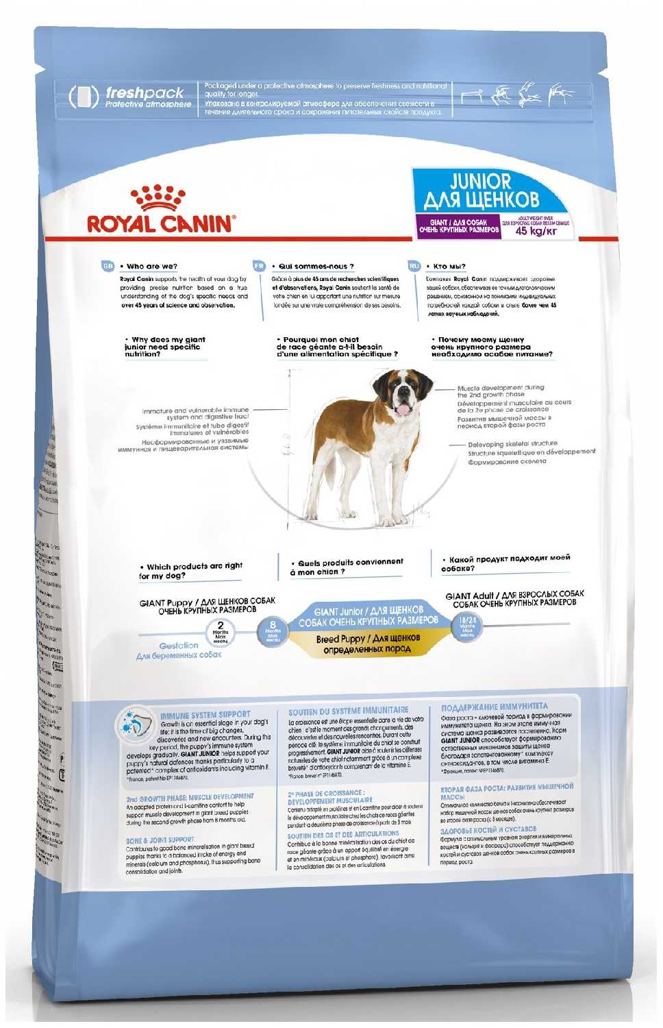 Дополнительная информация : | 1) поддержание иммунитета: Фаза роста – ключевой период в формировании иммунитета щенка. На этом этапе иммунная система щенка развивается постепенно. Корм Giant Junior способствует формированию естественных механизмов защиты щенка благодаря запатентованному* комплексу антиоксидантов в том числе витамина Е, 2) вторая фаза роста: развитие мышечной массы: Оптимальное количество белка и L-карнитина обеспечивают набор мышечной массы щенков собак очень крупных размеров во второй фазе роста (с 8 месяцев), 3) здоровье костей и суставов: Формула с оптимальным уровнем энергии и минеральных веществ (кальция и фосфора) способствует поддержанию костей и суставов щенков собак очень крупных размеров в период роста |