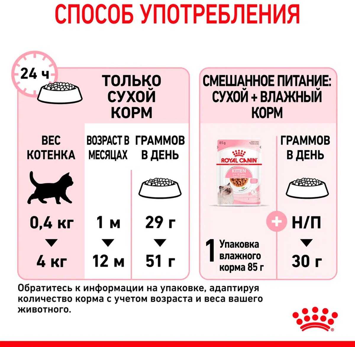 Одним из плюсов этого корма является возможность смешивать сухой и влажный. С 4 месяцев добавили в рацион котенка паучи,кушает с удовольствием.