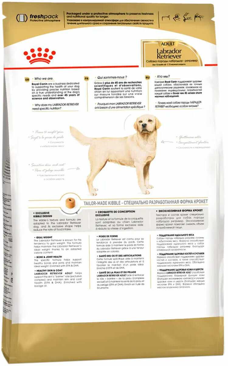 Лабрадоры-ретриверы - просто чудесные собаки и это лучший для них корм!Для заботы о состоянии шерсти разработан очень полезный комплекс нутриентов. Об этом пишет производитель в описании товара, а производителю я полностью доверяю, ведь годами Роял зарабатывал свою репутацию среди клиентов.