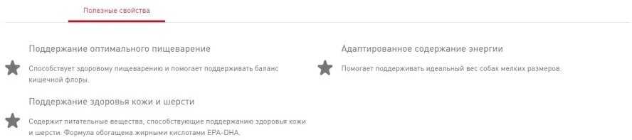 Особые потребности : | для активных животных, для здоровья кожи и блеска шерсти, для здоровья костей и суставов, для ухода за ротовой полостью, при склонности к избыточному весу, при чувствительном пищеварении |