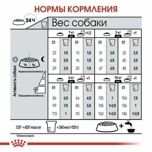 Берем собаке среднего размера. Удобно брать на тренировки. Граммовку четко считает, на этом корме у собаки не болит живот