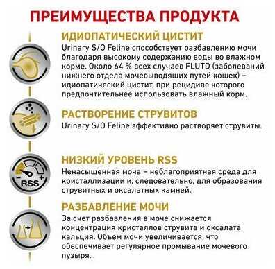 - Корм подтверждённо растворяет струвитные камни, устраняя кровь при мочеиспускании и нормализуя pH мочи.