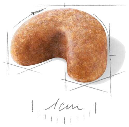 - Крупные, хрустящие гранулы, удобные для захвата собакам с большим ротовым аппаратом, как у бульдогов.