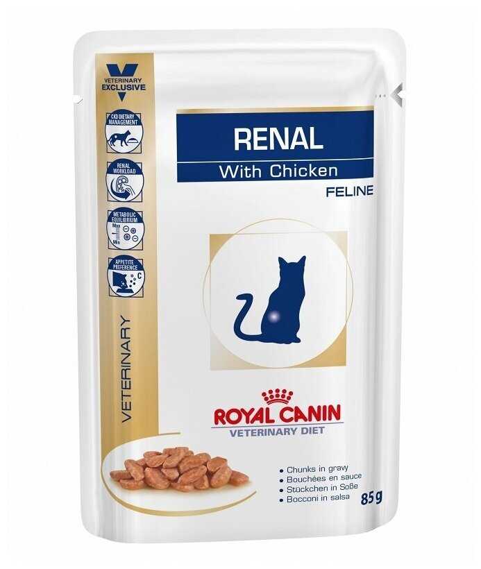 Эффективность корма при хронической почечной недостаточности: Влияние на клиническое состояние животных: Отзывы демонстрируют полярный опыт использования корма Royal Canin Renal при ХПН у кошек. Часть владельцев отмечает значительное улучшение состояния питомцев: кошки становятся активнее, набирают вес, показатели почечных анализов стабилизируются или не ухудшаются, что позволяет продлить жизнь животным даже в тяжелых случаях, когда ранее рекомендовалась эвтаназия. Эмпирические данные указывают на эффективность корма при длительном применении, отдельные пользователи используют его на протяжении 3-6 лет. В противоположность этому, встречаются сообщения о резком ухудшении самочувствия уже через несколько дней кормления: нарастает вялость, апатия, кошки прячутся, что свидетельствует о возможной индивидуальной непереносимости или прогрессировании заболевания несмотря на диетотерапию. Эффективность корма сильно зависит от индивидуальных особенностей животного и стадии заболевания, поэтому его применение требует постоянного ветеринарного контроля и мониторинга биохимических показателей крови.
