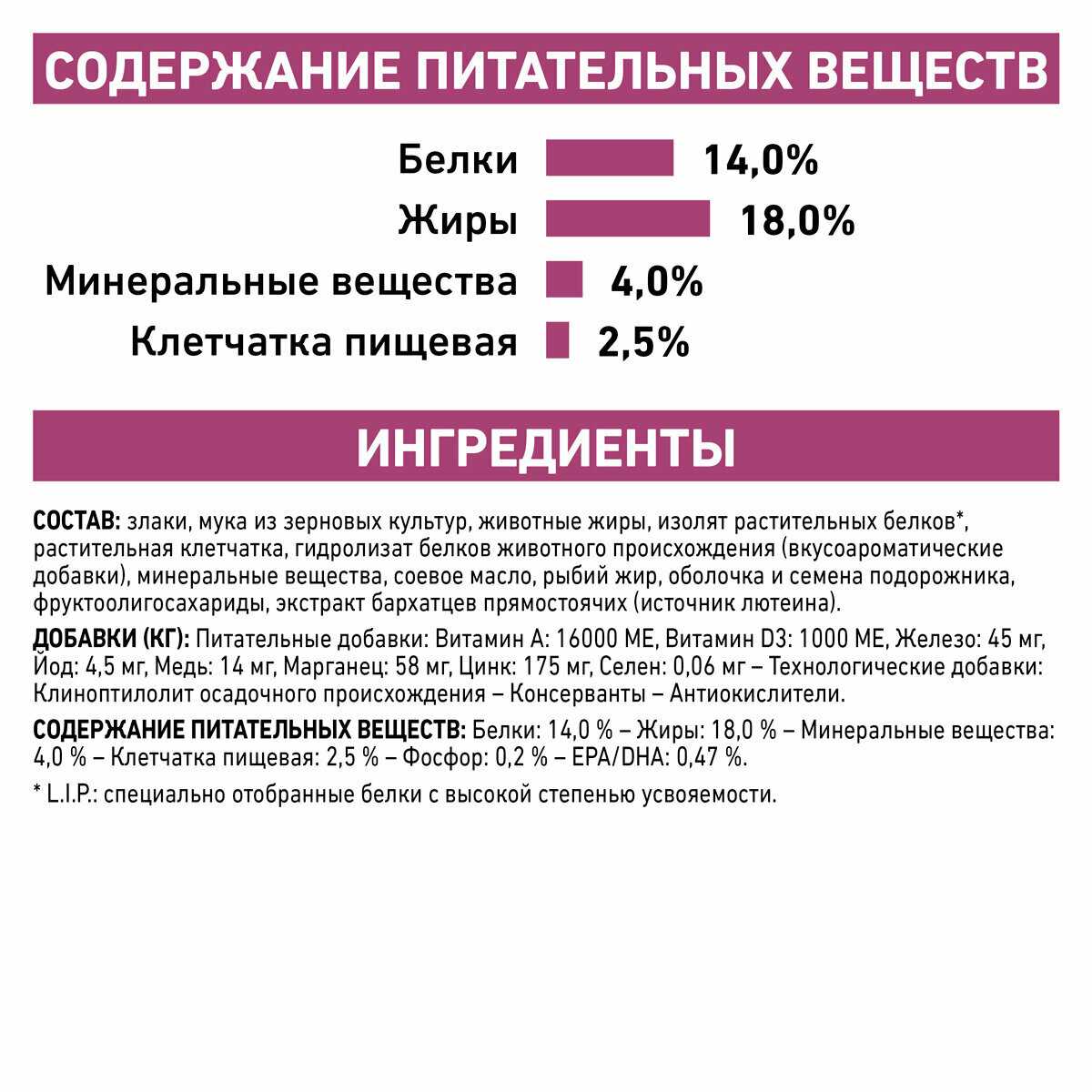 Класс ингредиентов : | премиум, суперпремиум |