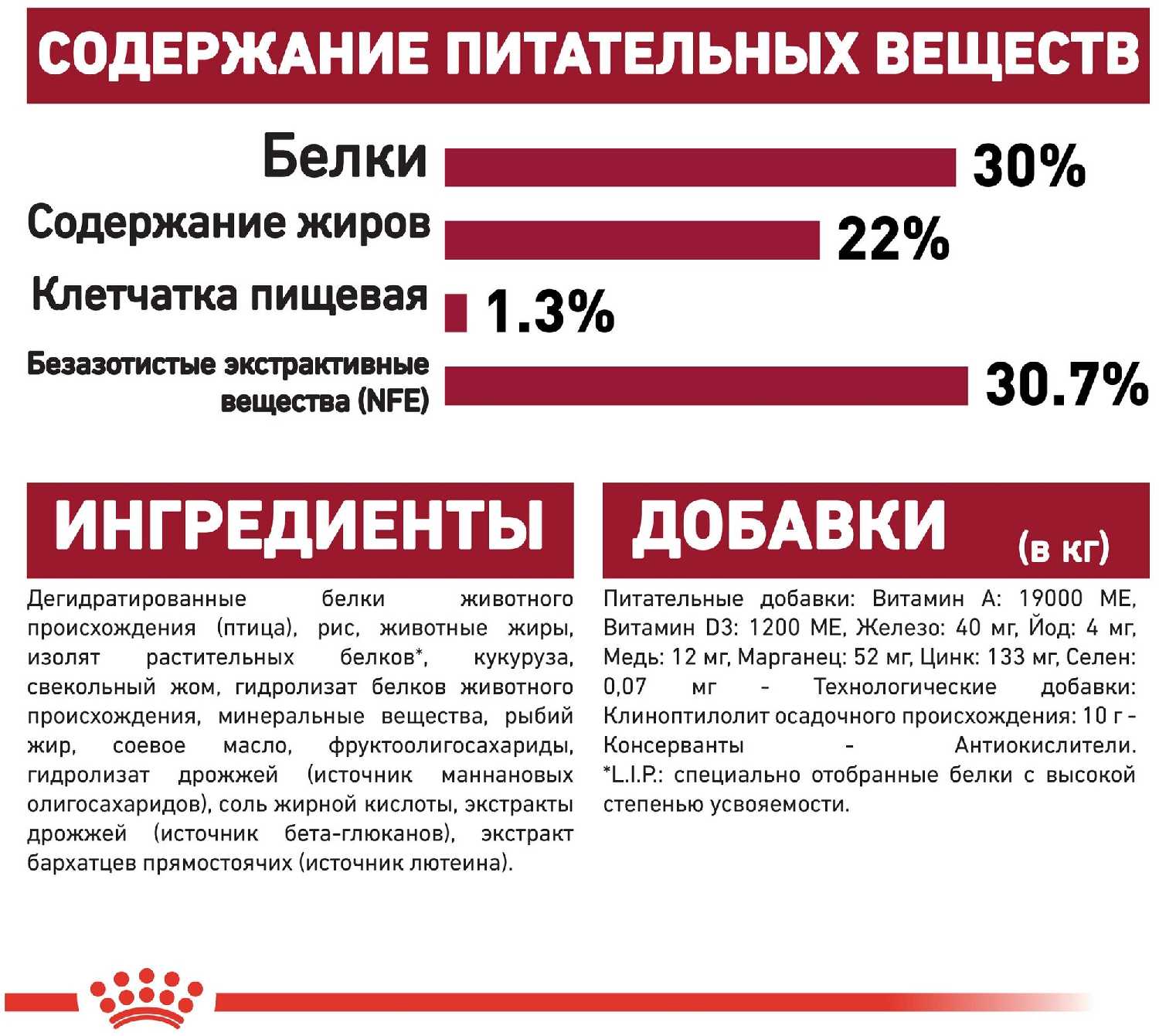 Особые потребности : | для активных животных, для беременных/кормящих, при чувствительном пищеварении |