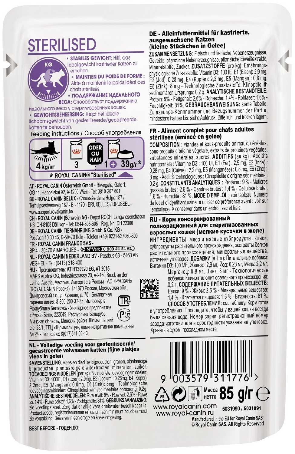 | Особые потребности : | для живущих в помещении, для живущих на улице, для здоровья кожи и блеска шерсти, для здоровья костей и суставов, для определенных пород, для стерилизованных/кастрированных, профилактика МКБ, профилактика избыточного веса |