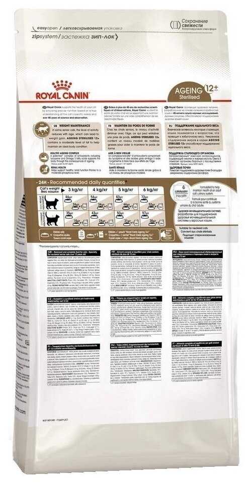 Специализация для возрастных потребностей и профилактика возрастных заболеваний. Корм демонстрирует эффективность в поддержании здоровья кошек старше 12 лет. Владельцы особо отмечают его благотворное влияние на мочевыделительную систему, что критически важно для пожилых животных. Корм помогает поддерживать стабильный вес у уже не очень активных питомцев, обеспечивая их всеми необходимыми питательными веществами без риска ожирения. Для животных с отсутствующими зубами или проблемами с челюстями корм подходит благодаря своей структуре. Результатом длительного применения является хорошее самочувствие кошек даже в возрасте 14-17 лет.