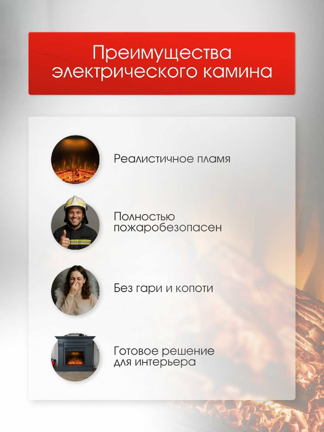 | Дополнительная информация : | Модель оснащена 6-ступенчатой системой обогрева, что позволяет подобрать оптимальный режим температуры в комнате. Уровень яркости пламени также можно регулировать в зависимости от предпочтений. |