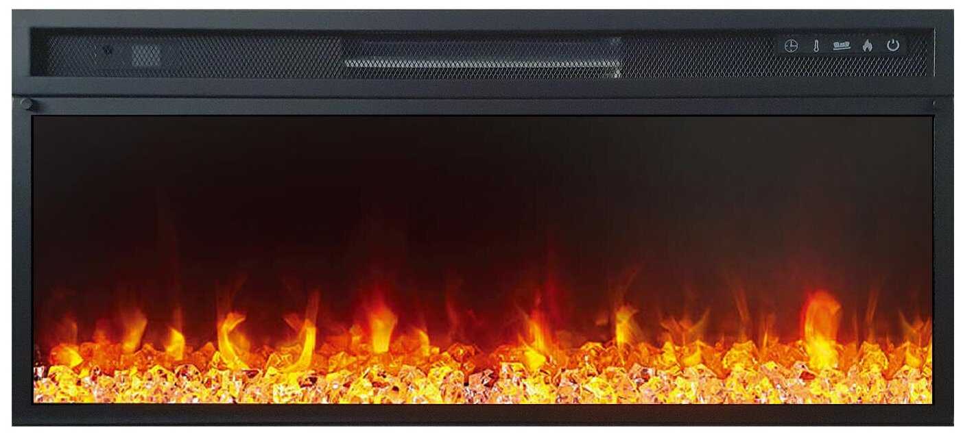 Этот камин нам подошел по параметрам и очень понравился его внешний вид. Дизайн лаконичный, ничего лишнего, выглядит все натурально. Камин полностью соответствует фото и в реальности он такой же красивый. Установили мы его в нишу в стене, сморится органично и современно. Подсветку самих кристаллов и яркость пламени можно регулировать, можно включить звук потрескивания дров. Температура обогрева регулируется. Управлять камином можно или с пульта, или кнопками. В использовании сложностей нет. Мы довольны.
