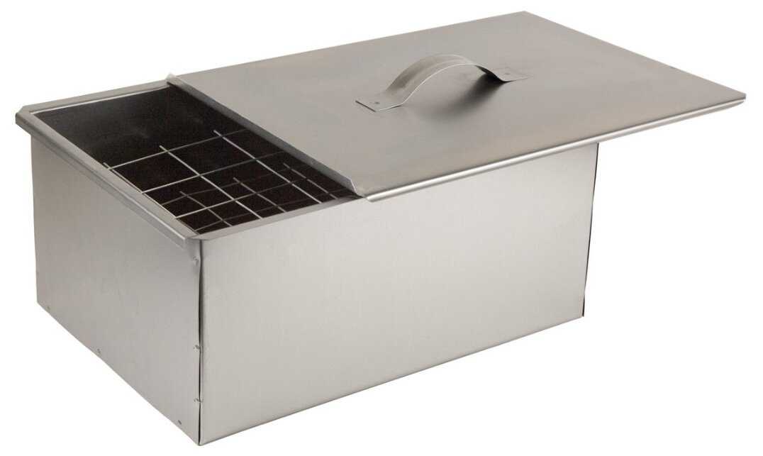 Приобретал для газового гриля. Металлическая коробка с перфорированной крышкой для опилок или чурочек - очень понятная в использовании конструкция.