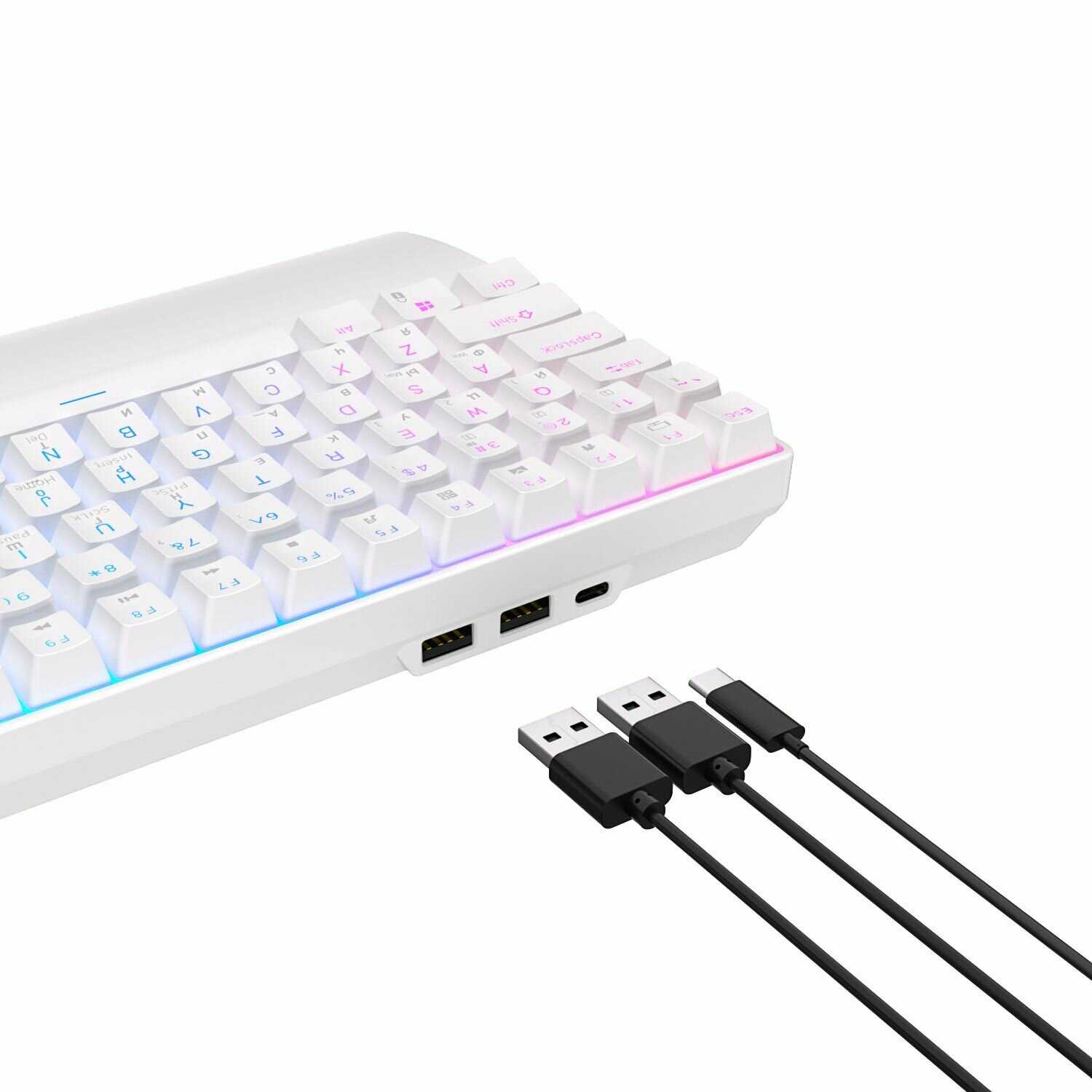 - + Приятный тайпинг, нет задержек отклика при беспроводном подключении, различные режимы подсветки и их цветовые схемы (и ничего не тупит, что важно)