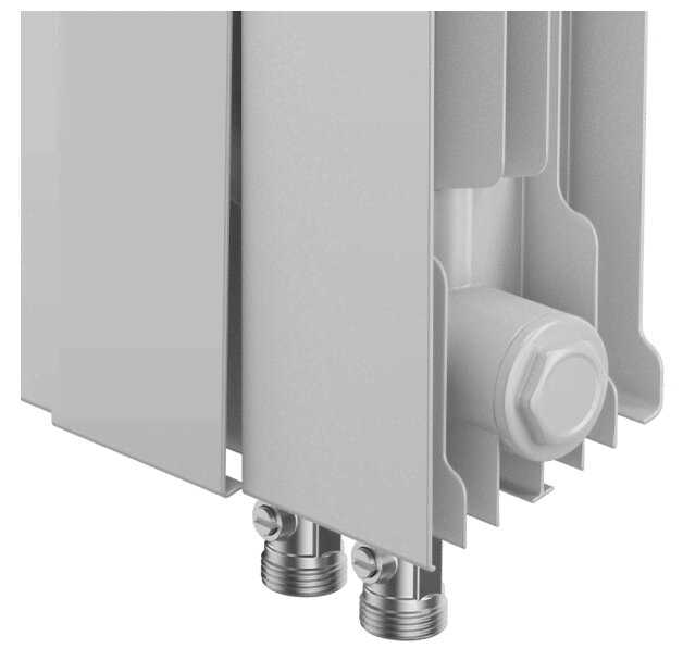 - + Радиатор алюминиевый. Легкий. Заказал в пункт выдачи. 2 штуки. Сразу скажу, что необходимо обратить внимание, какое вам необходимо подключение, боковое или нижнее. Так в описании сразу прочитал, вам нижнее правое или левое. Очень ценный совет. По цвету скажу, что светло серый, на картинке он темно-серый. Приятный цвет радует глаз. К радиатору можно купить умную термоголовку, но я взял простую термоголовку.