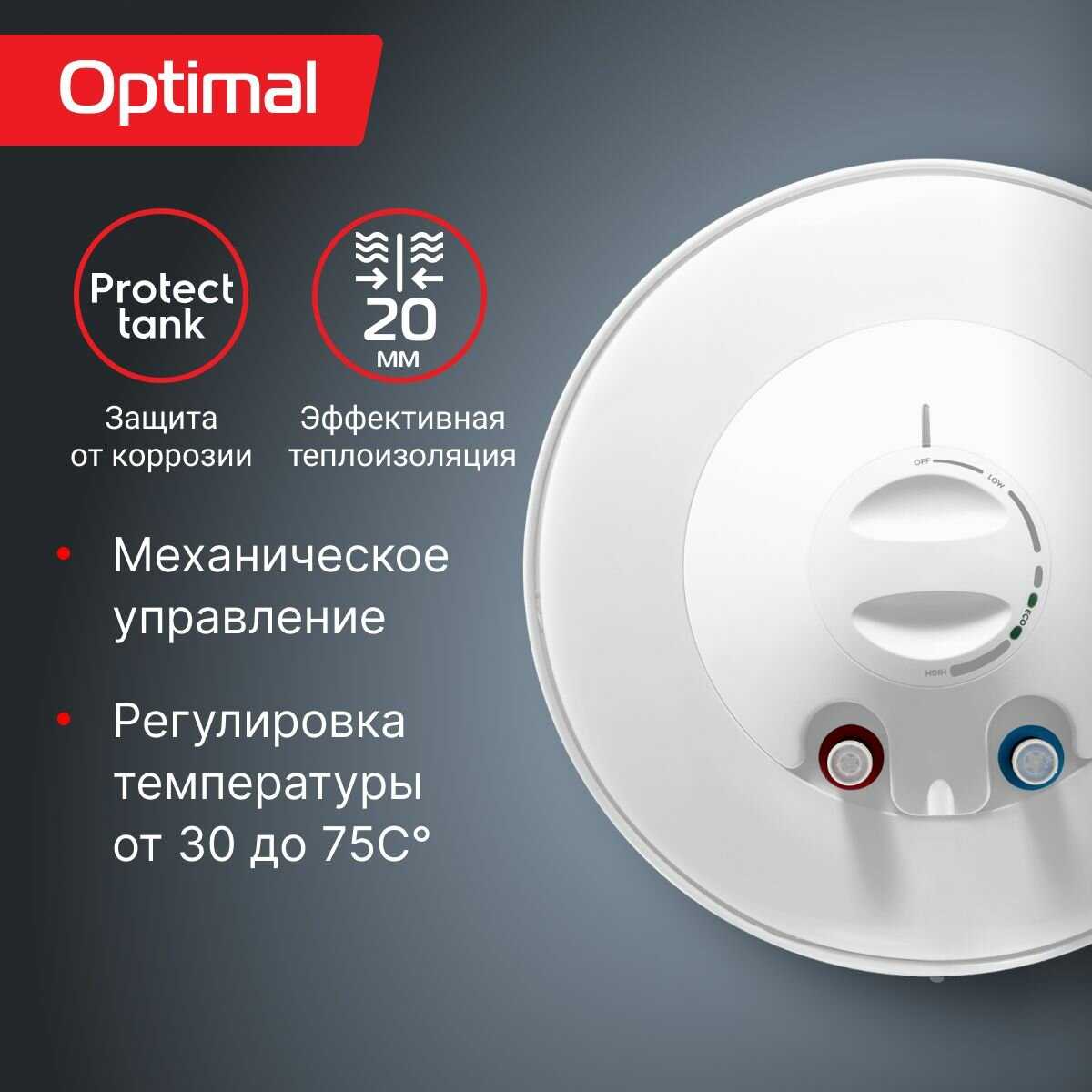 Эко-режим ограничивает нагрев до 55 градусов, продлевая срок службы и снижая накипь. Пользователи рекомендуют его для ежедневного использования, особенно ночью — безопасно и экономно. В нём воды хватает на семью из четырёх. Ручка управления позволяет сразу переключаться на эко. -