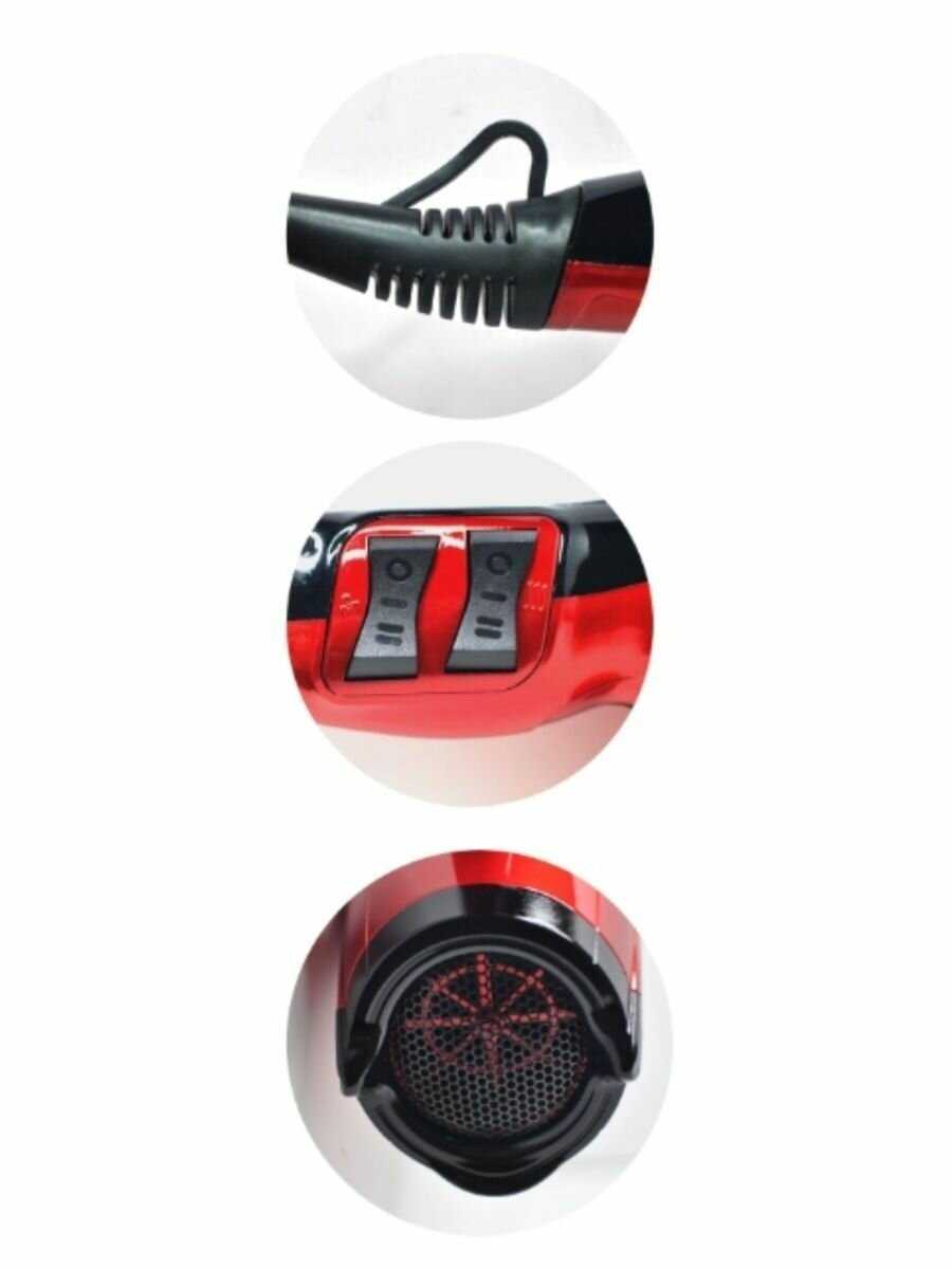 - - Не соответствует заявленной мощности (слабо дует). Длина провода короче 2 метров.