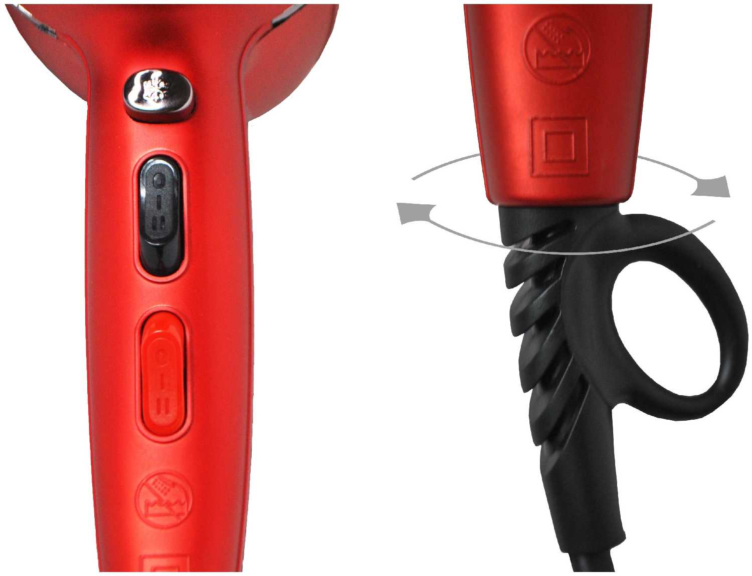 - + Новый красный фен. Мощный поток воздуха. Толстый как у профессионального фена шнур. (1 звезду ставлю за год работы прибора).