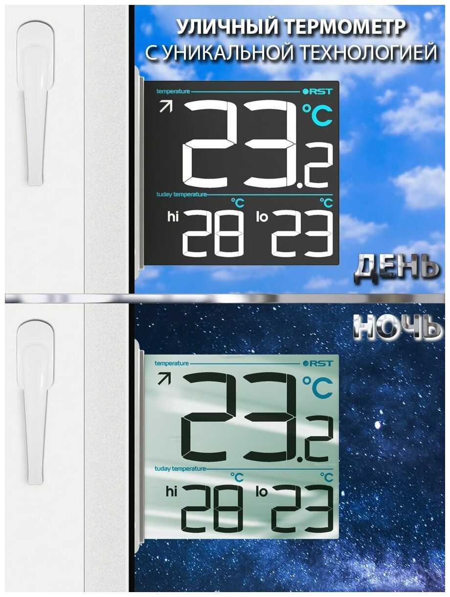это уже 3-ий за 8 лет RST термометр. первые два крепились на стекло. в этом есть хорошие изменения, инверсивное стекло -видно замечательно. есть претензия(моя) к пластине, которая крепится к оконной раме и на которую затем вешается сам термометр. она должна быть толще(в идеале из металла), верхнее ушко под винт лучше сделать длиннее вверх, чтобы при посадке термометра он не касался винта крепления. нижний можно оставить таким. в остальном шикарный термометр - рекомендую ВСЕМ)))