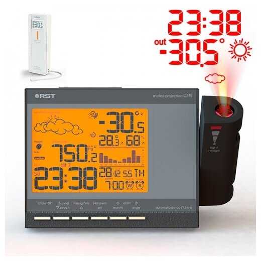 - + Метеостанция супер!! Когда настроил и установил, не разочаровался! В ней самое основное: - проецирование на стену или потолок (время, погоду, внешнюю температуру); -синхронизация времени, в том числе московское (живу в этом часовом поясе); - красивая черного цвета с узором (у меня почему то ассоциация с формой Российской сборной на олимпиаде); - на дополнительном датчике есть табло с внешней температурой; - на основном блоке есть данные внешней и внутренней температуры, влажность в помещении, будильник с пн по пт или (и) каждодневный, атмосферное давление, значок погоды...., время. -выносной блок для датчика с проводом на конце которого маленький датчик (блок укладывается на подоконник, а провод с датчиком выводится за раму окна) (мне кажется надо выбирать не солнечную сторону, чтобы температура была реальной); - инструкция на русском.