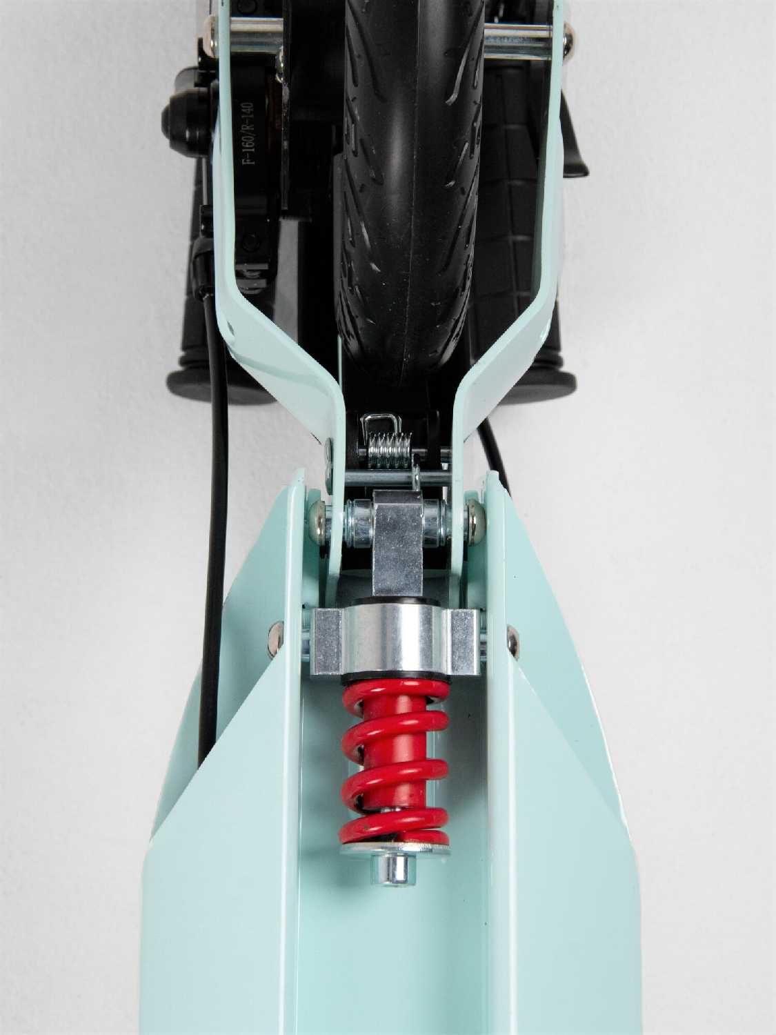 - Два амортизатора (передний и задний) гасят вибрации на кочках, обеспечивая мягкость хода, что особо отмечено при езде по городскому асфальту.