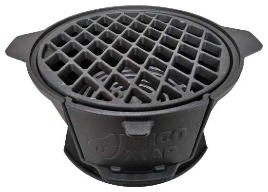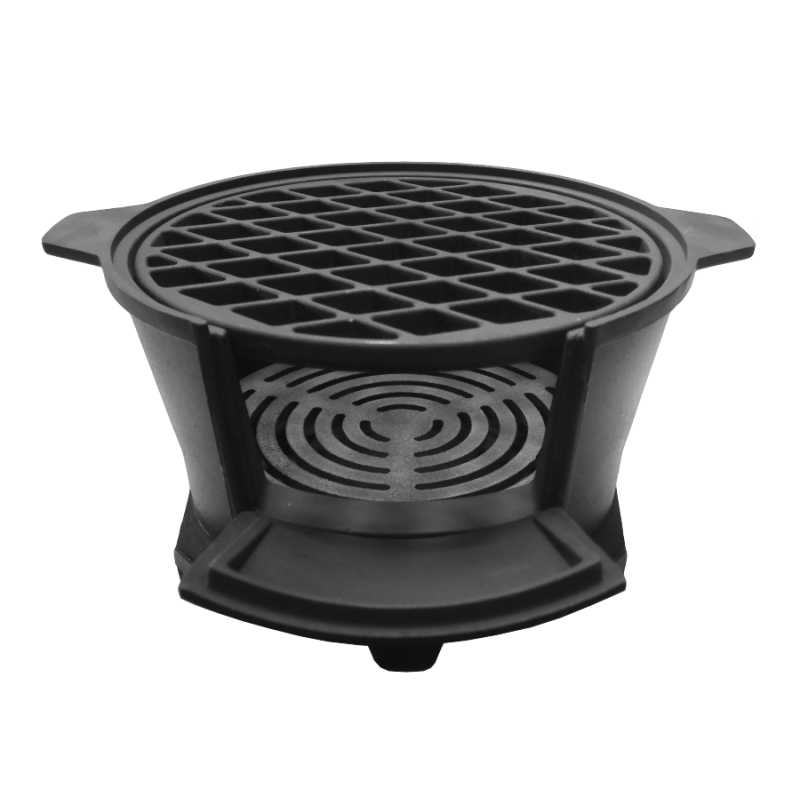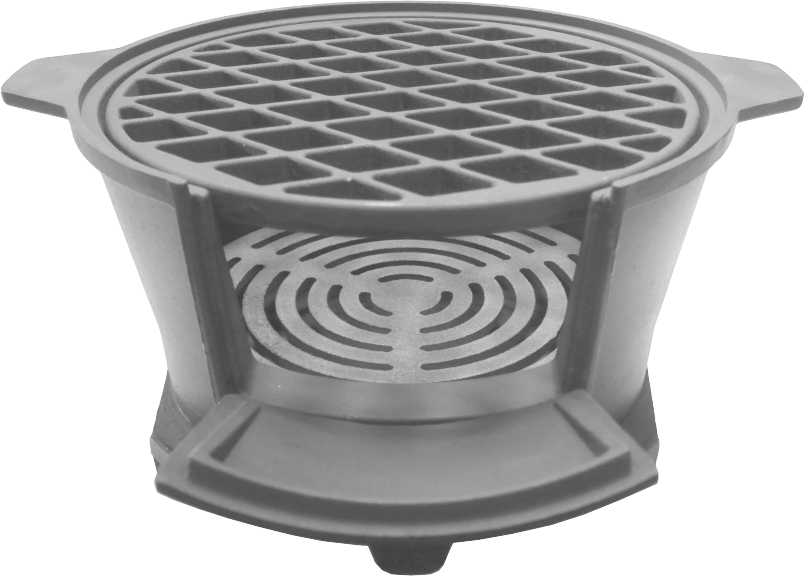 - + Аккуратное чугунное литье. Необычная, но очень функциональная концепция. Не совсем гриль, так как без крышки в стандартной комплектации, но и лучше простого мангала. Угли держатся дольше, жар более равномерный, или как-то так. Вообще штука аккуратная и эстетичная, просто приятно стоять и вертеть на ней еду. Чувствуешь, что все не зря :) по вместительности прикладываю фотку с сосисками. Три пачки должны точно поместиться. На фотке две пачки.