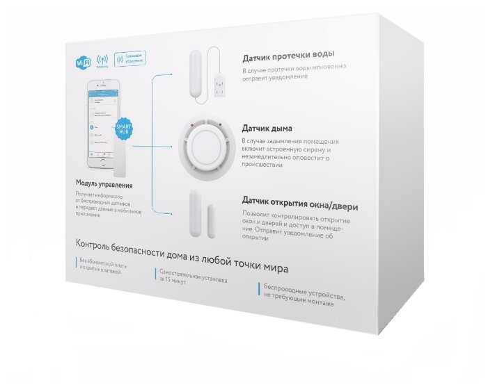 Комплектация : | шлюз, датчик открытия, датчик протечки, датчик дыма |