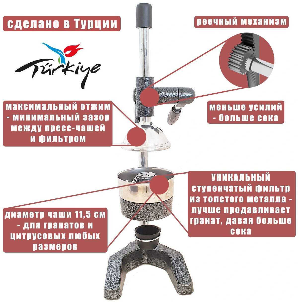 Hobbi Профессиональный пресс - соковыжималка для гранатов и цитрусовых, редукторный механизм, Kale Termos