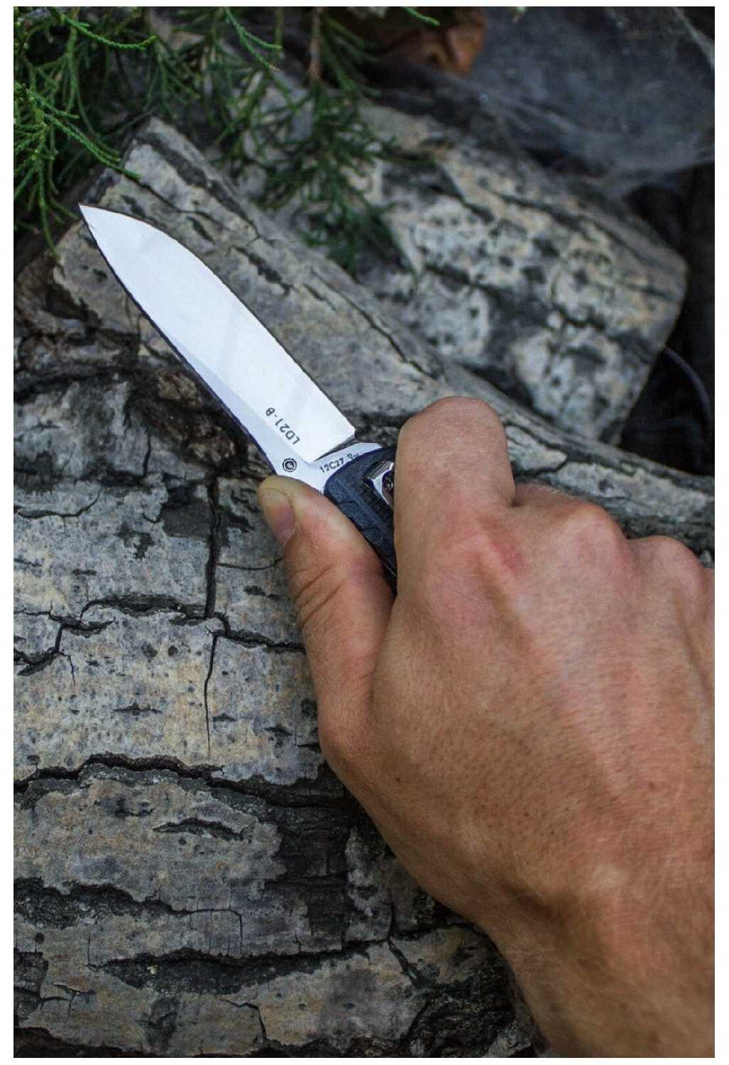 - + качественно сделаный, не люфтит, сталь заточку держит хорошо