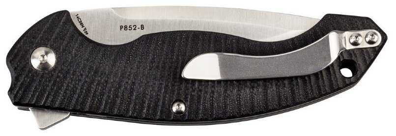 - + Хорошая сталь, очень качественная сборка и исполнение. Тактильно правильная форма, очень удобно держать. Боковая накладка не оставляет отпечатков))