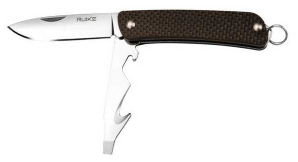 - + Маленький, компактный, очень удобный. открывашка пара гатжетов, и сам остренький ножик.